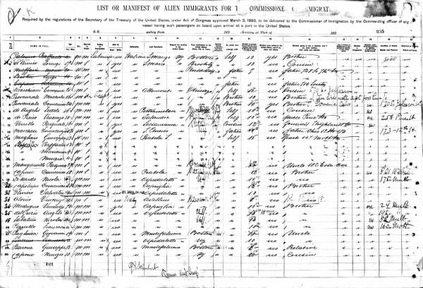De Angelis Family 1916 Ship Arrival Manifest, Lines 12-16