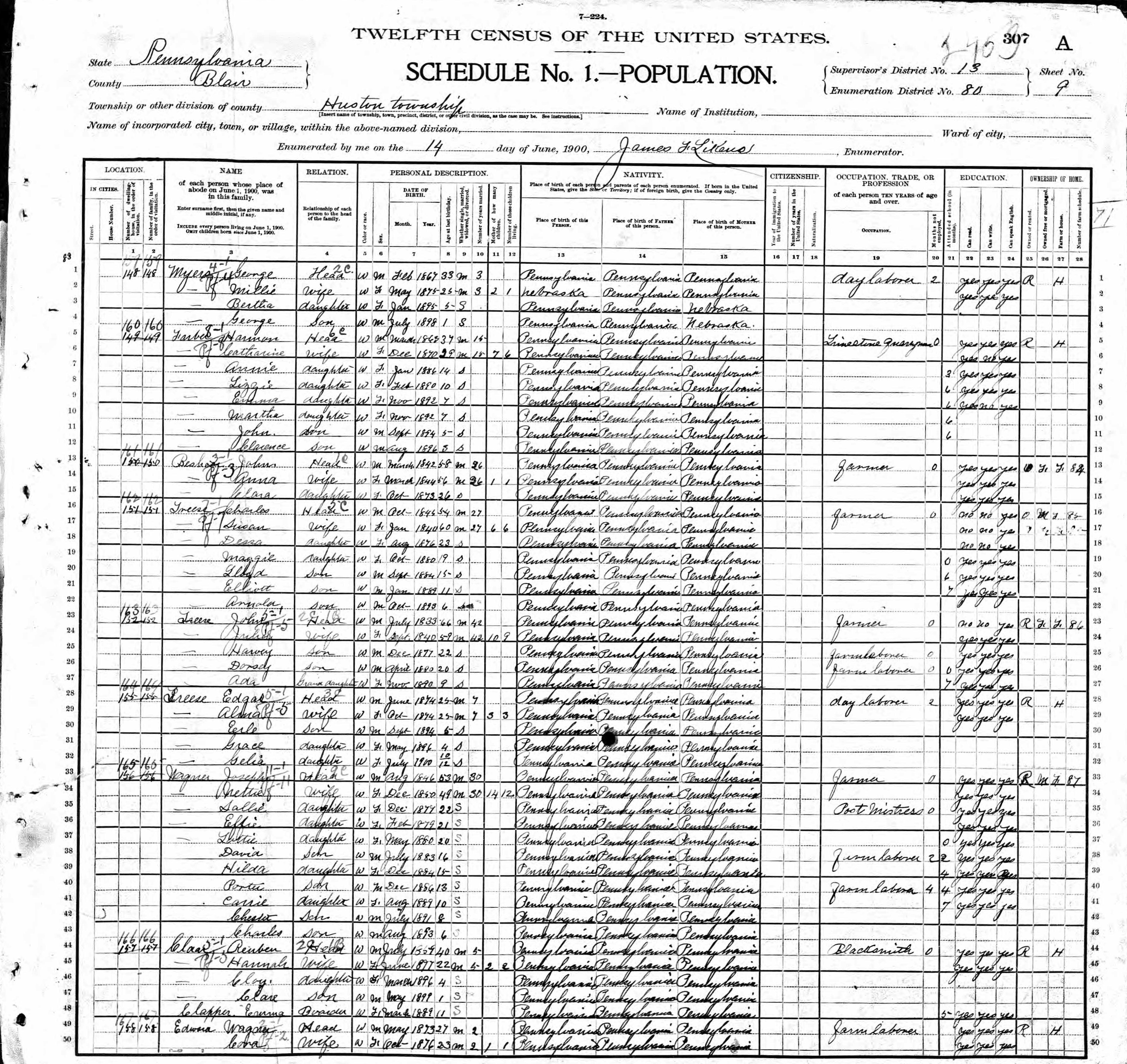 Farber Family 1900 Federal Census Pennsylvania, Lines 5-12