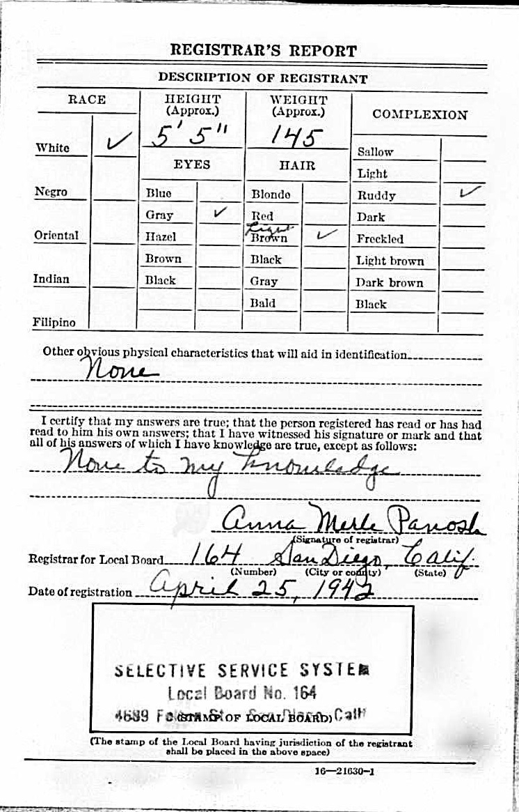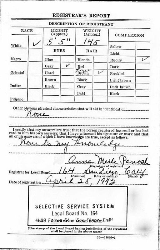 Sylvia L. Mitchell were divorced. He died on January 21, 1977, at age 83. He was buried in Fort Rosecrans National Cemetery, San Diego, California.
