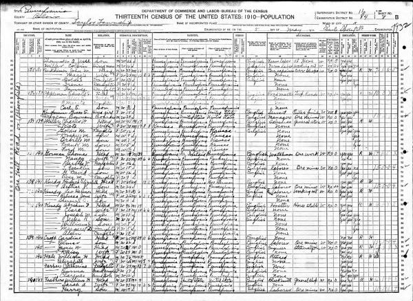 Farber Family 1910 Federal Census Pennsylvania, Lines 95-97