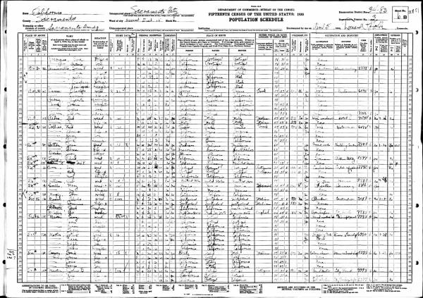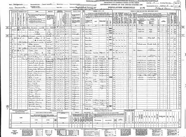Gregson Family 1940 Federal Census California, Lines 15-20