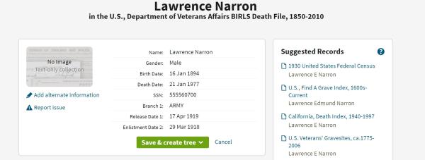 Lawrence Edmund Narron was born on January 16, 1894 in Kansas, USA. He and