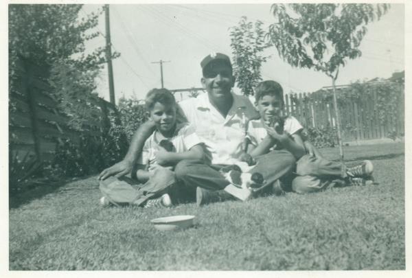 Pietro Tresca sitting, Dominic, Ralph, and Jerry Tresca Sitting on the Floor