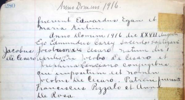 James V. De Cesare (De Cesaro) was born on April 1, 1916 in Springfield, Sangamon, Illinois, USA. He died on November 29, 1936, at age 20, in Springfield, Sangamon, Illinois, USA. He was buried in Calvary Cemetery, Springfield, Illinois.