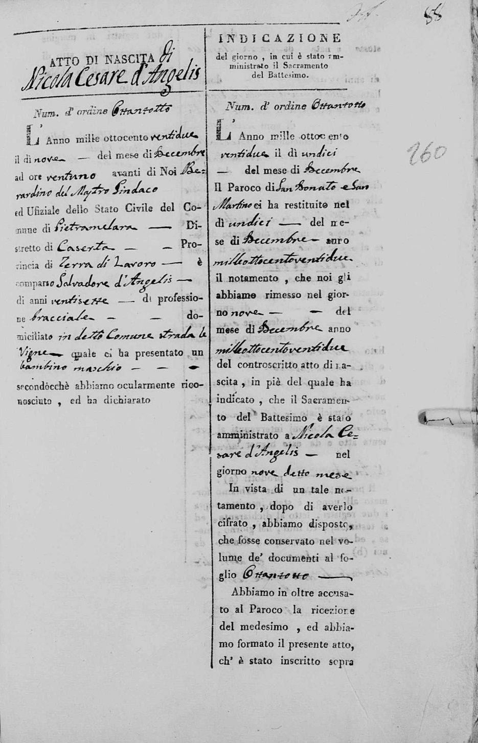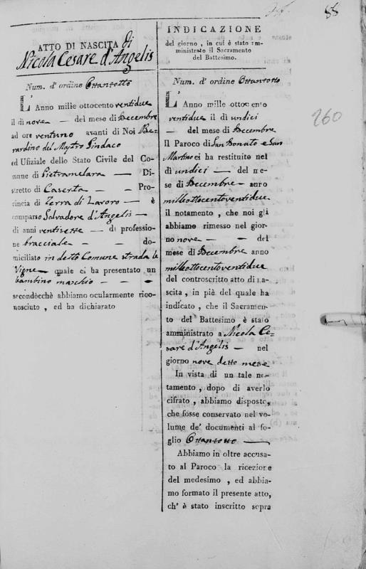 Nicola Cesare De Angelis was born on December 9, 1822 in Pietramelara, Caserta, Campania, Italy. He and