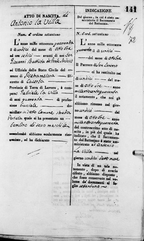 Antonio La Villa was born on October 11, 1840 in Pietramelara, Caserta, Campania, Italy. He died.