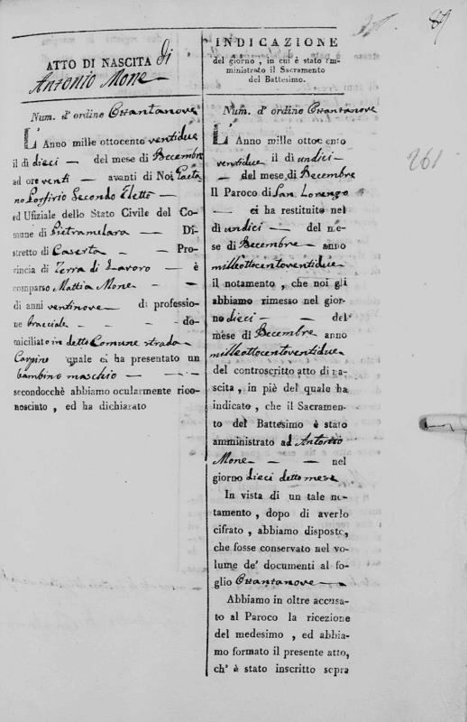 Mattia Mone was born in 1791 in Furnolo, Caserta, Campania, Italy. He and