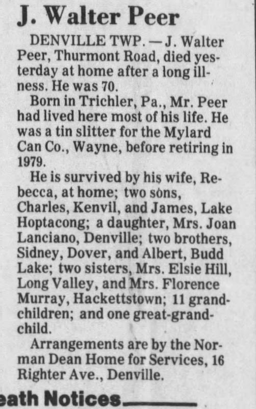 James Walter. Peer, Jr., was born in 1939 in New Jersey, USA. He died.