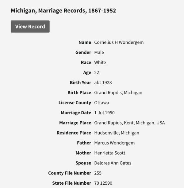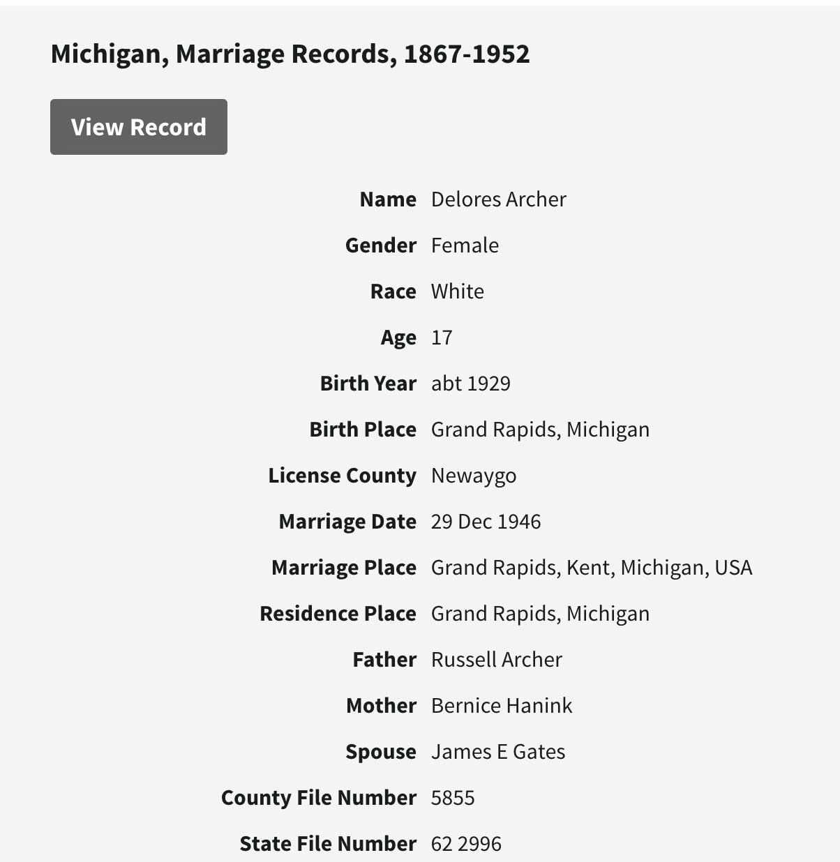 James Eugene Gates were married on December 29, 1946 in Grand Rapids, Kent, Michigan, USA. She and