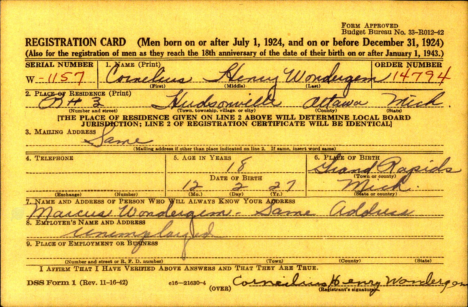 Cornelius Henry "Neil" Wondergem was born on December 2, 1927 in Grand Rapids, Kent, Michigan, USA. He and