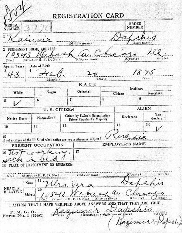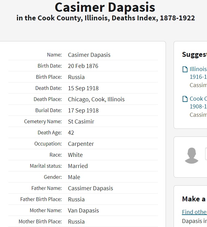 Family 1: Kasimir Dapshis Born: February 20, 1875, Died: September 15, 1918