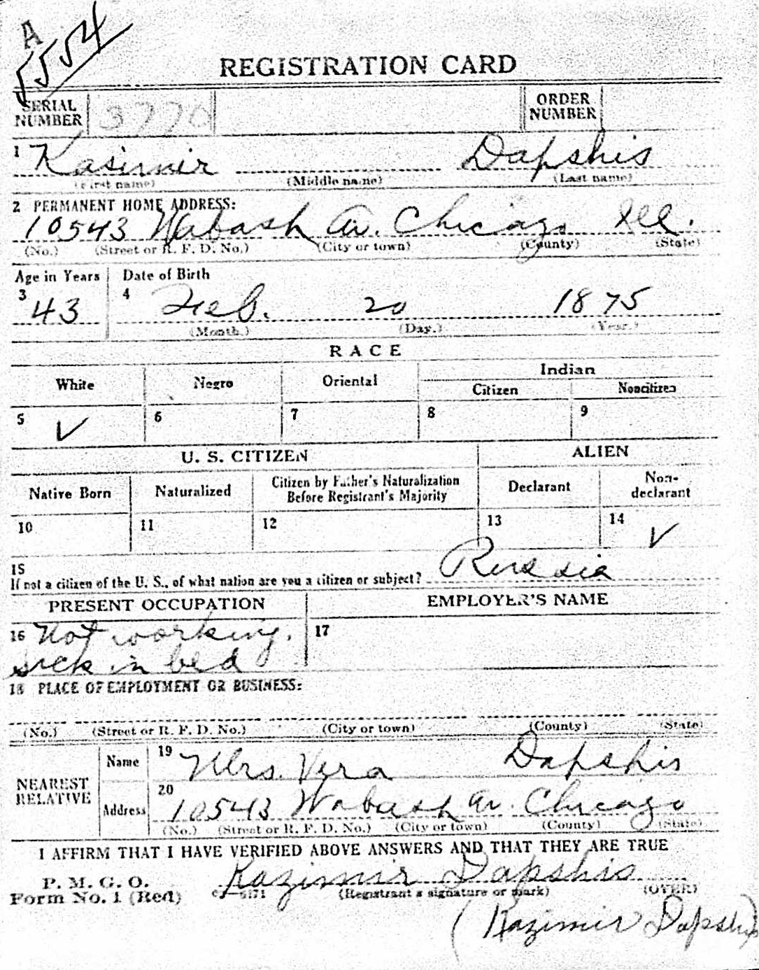 Kasimir Dapshis was born on February 20, 1875 in Lithuania. He and
