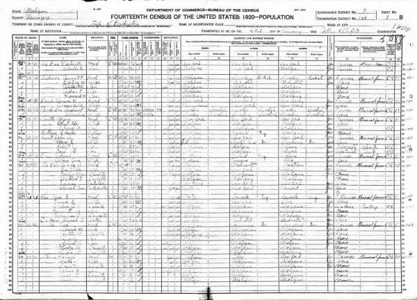 DeBois Family 1920 Federal Census Michigan, Lines 73-78