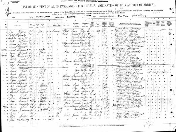 Kasimir Dapshis 1904 Ship Departure Manifest,m Line 5