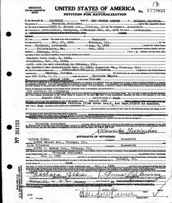 Dominic Guzinskas were married on February 17, 1920 in Chicago, Cook, Illinois, USA. She died.