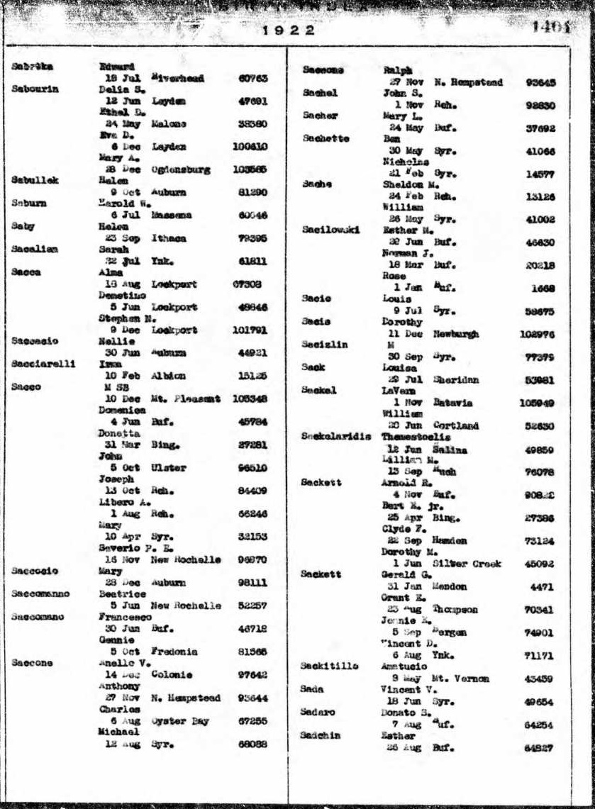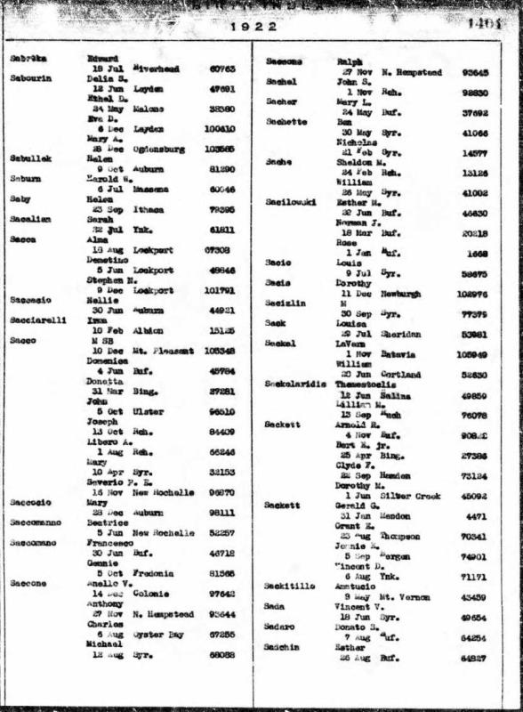 Sacca Family 1930 Federal Census New York, Lines 93-96