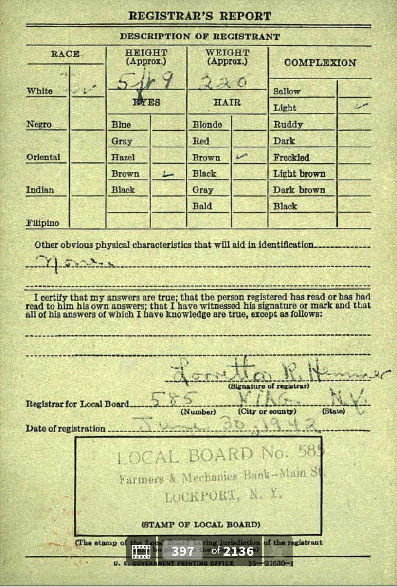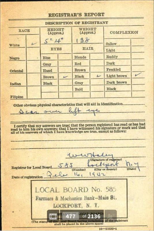 1942 World War II Registration Page 1