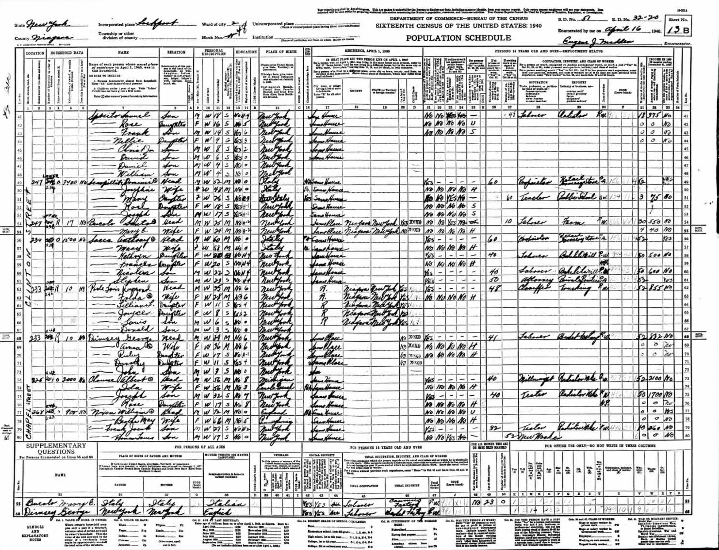 Scapelliti Family 1940 Federal Census New York, Lines 49-53