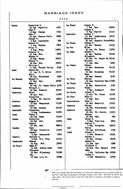 1919 Marriage Index
