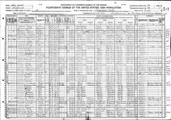 Paviglianti Family 1920 Federal Census New York, Lines 18-19