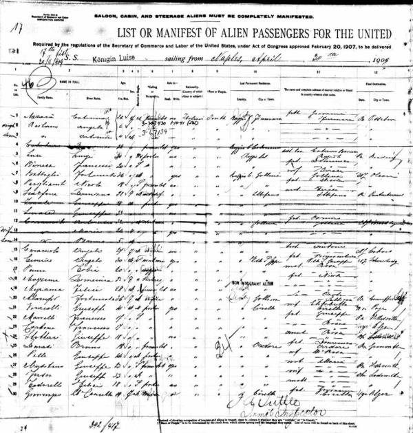 1909 Ship Departure Manifest, Line 8