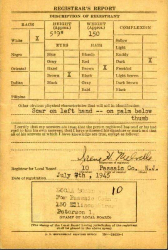 1945 World War II Registration Page 1