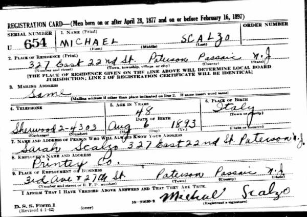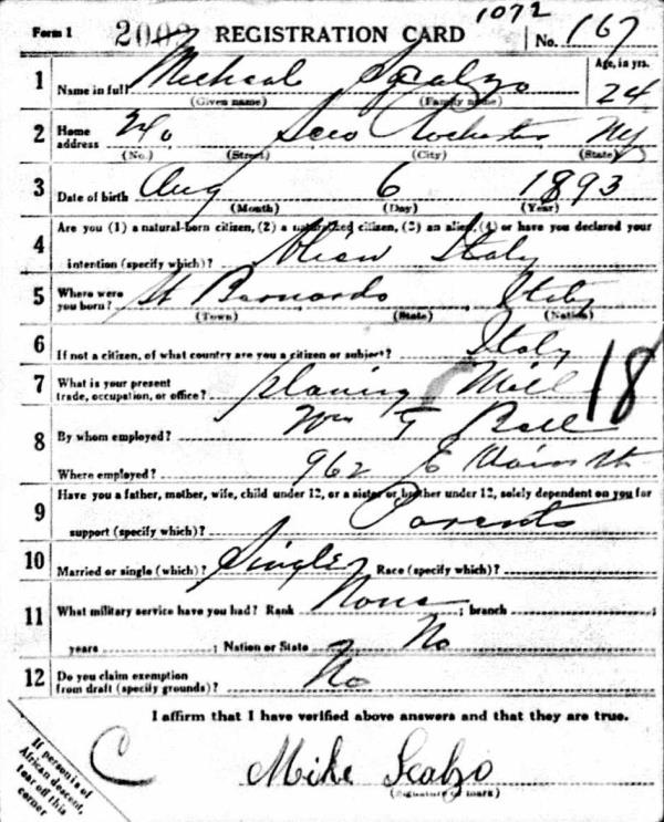 Michelino "Michael" Scalzo was born on August 6, 1893 in Decollatura, Catanzaro, Calabria, Italy. He and
