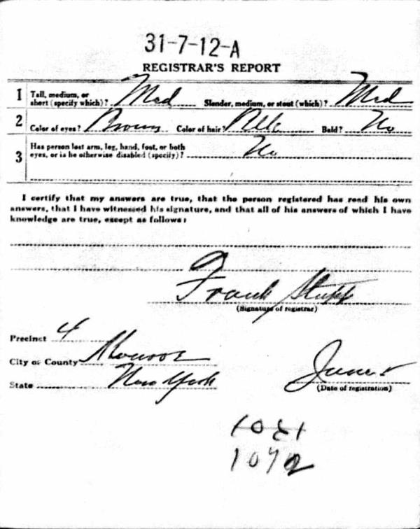 1918 World War I Registration Page 1