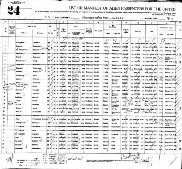 1928 Ship Departure Manifest, Line 20
