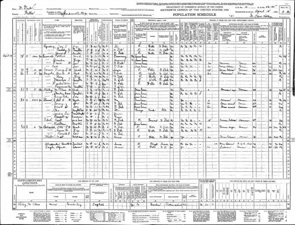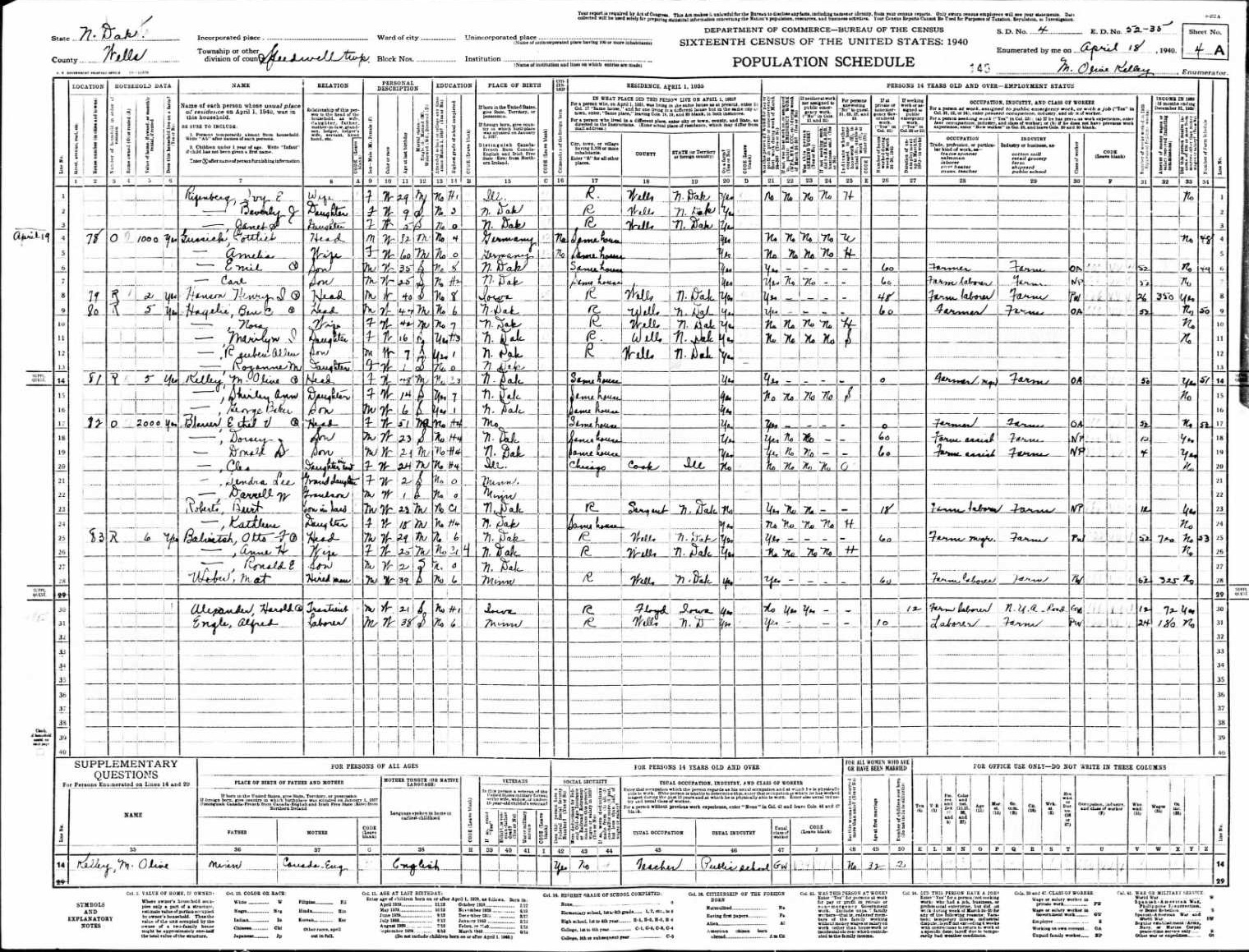 Kelley Family 1940 Federal Census North Dakota, Lines 14-16