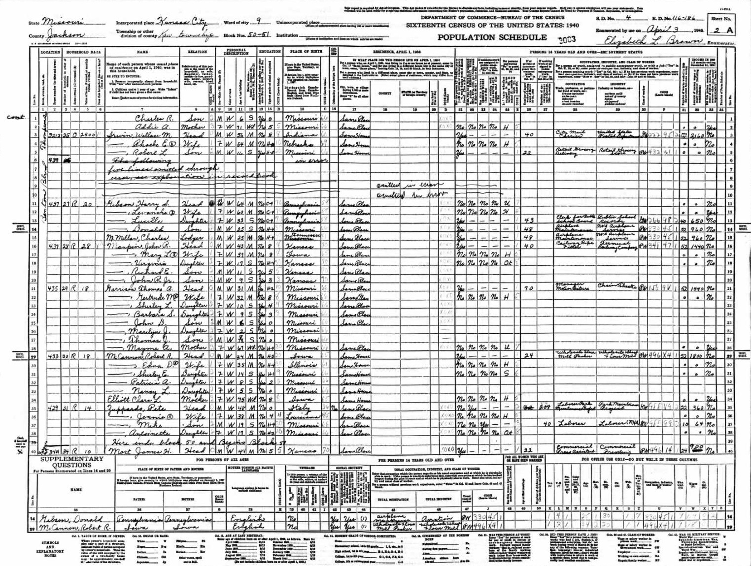 Maupin Famly 1940 Federal Census Missouri, Lines 16-20