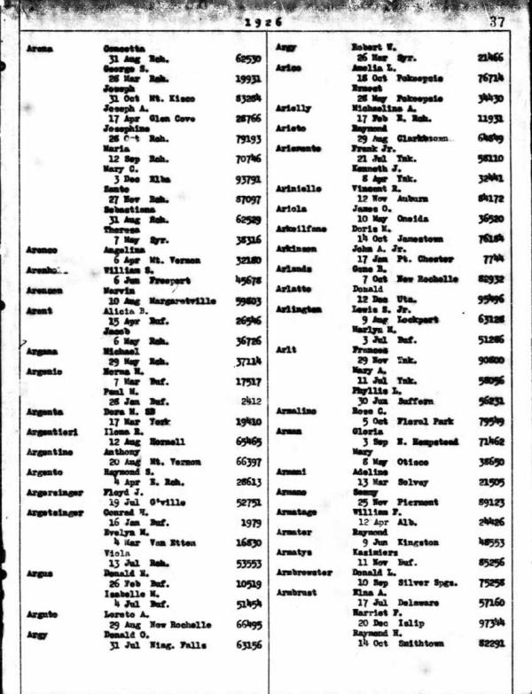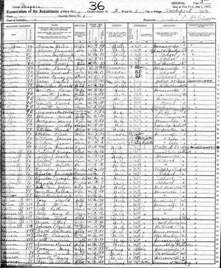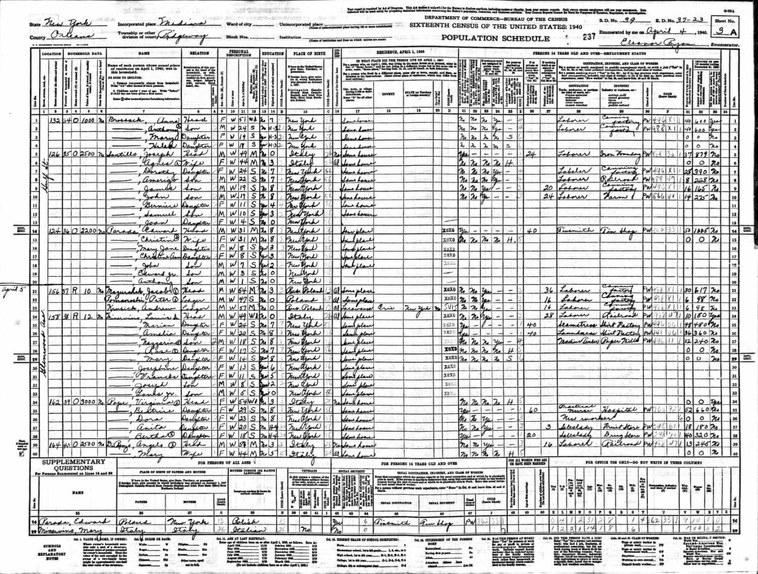 Arlington Family 1940 Federal Census New York, Lines 75-79