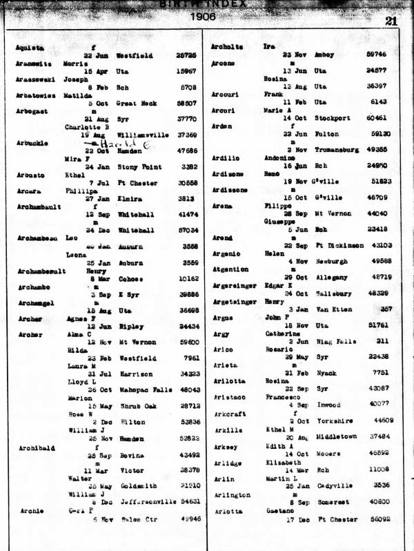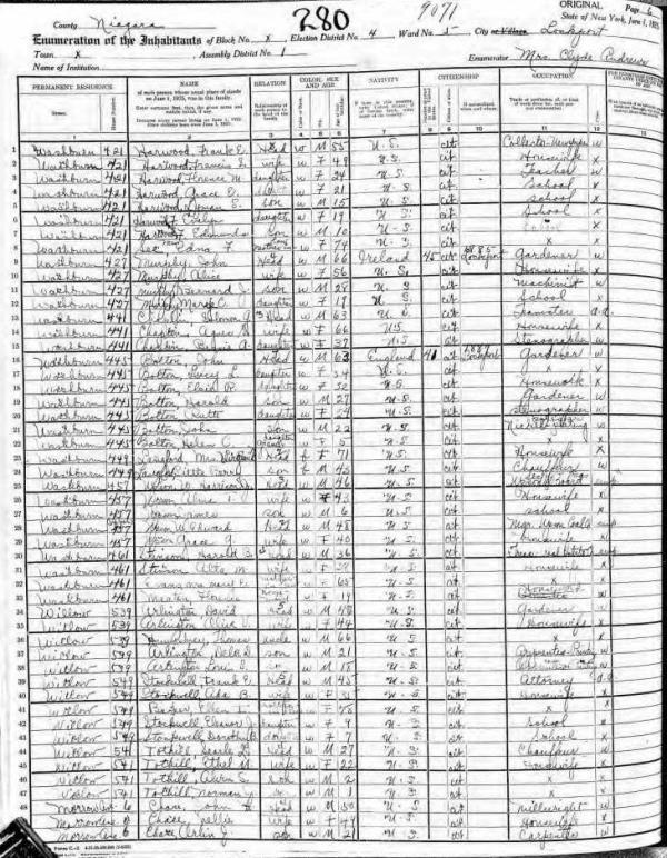 Arlington Family 1920 Federal Census New York, Lines 31-35