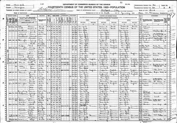 Pope Family 1920 Federal Census New York, Lines 84-95
