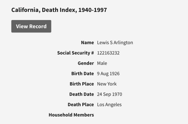 Lewis Stanley Arlington was born on September 9, 1906 in New York, USA. He and