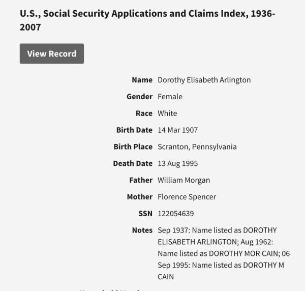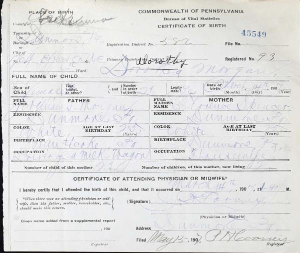 Dorothy Elizabeth Morgan was born on March 14, 1907 in Dunmore, Lackawanna, Pennsylvania, USA. She and