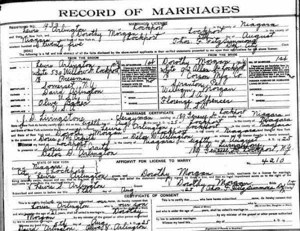 Dorothy Elizabeth Morgan were married on August 8, 1925 in Lockport, Niagara, New York, USA. He died in January 1992, at age 85, in New York, USA.