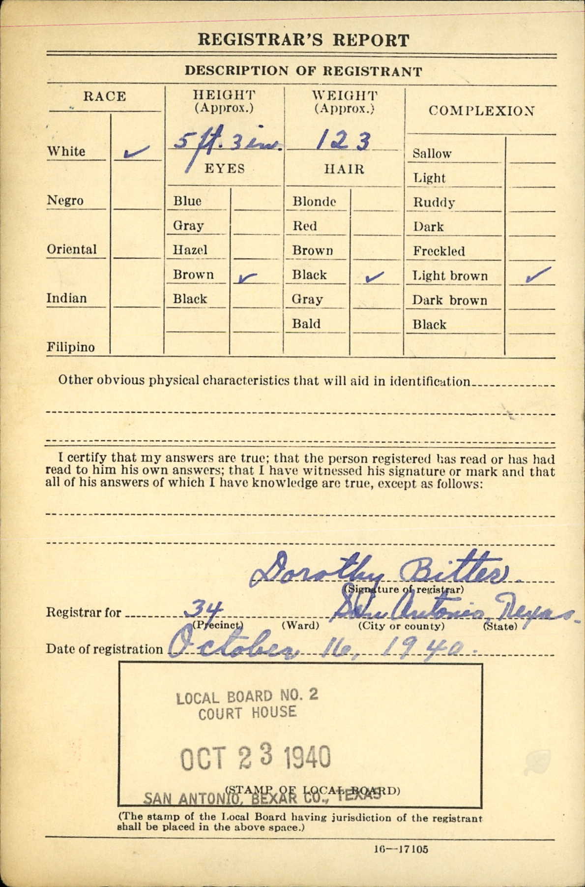 1940 World War II Registration Page 2