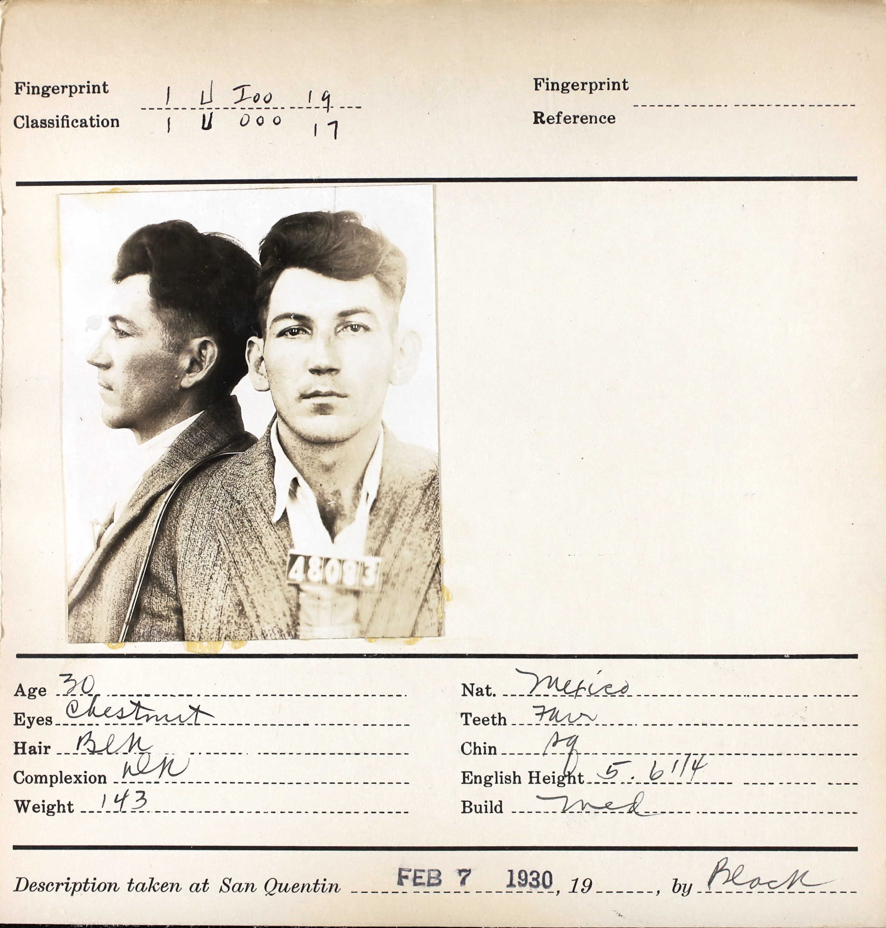 1934 San Quentin Prison Record Page 1