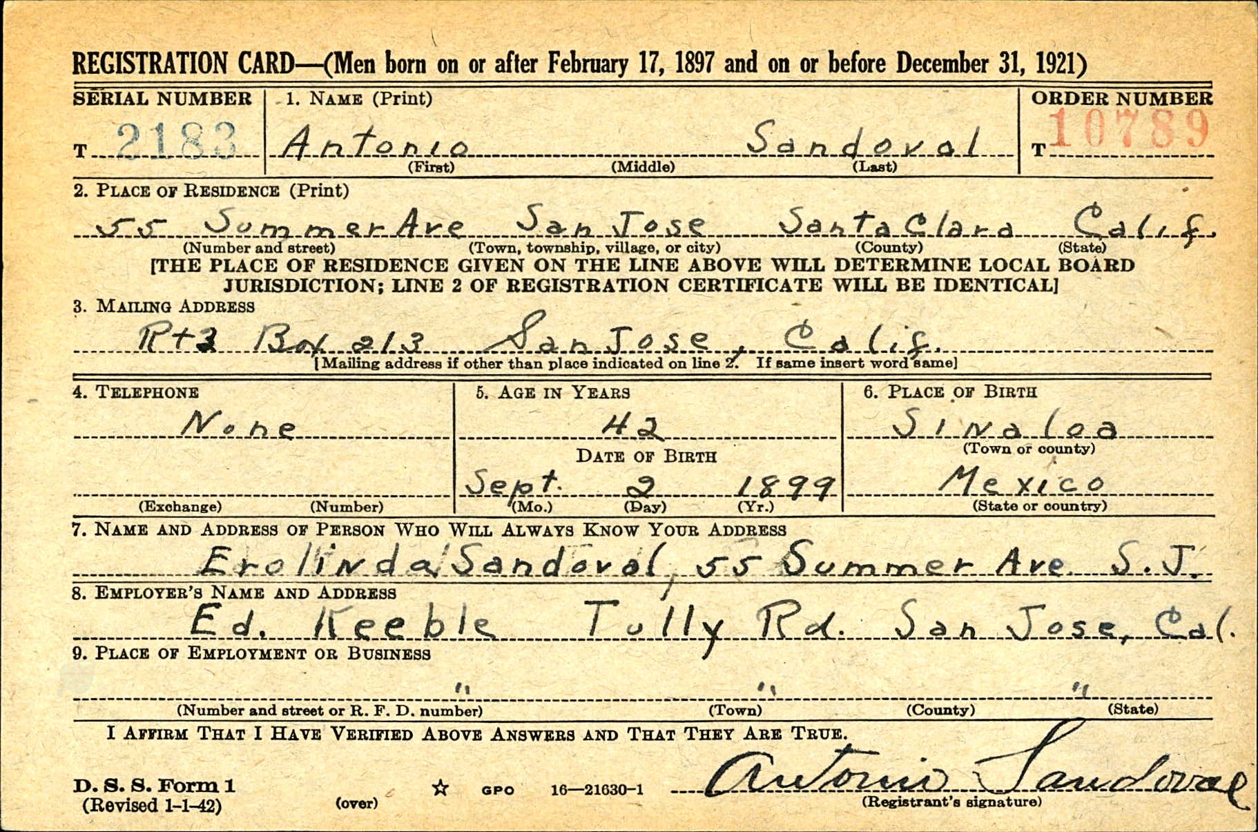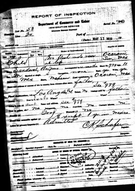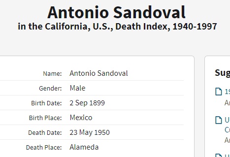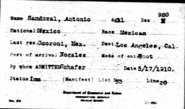 Antonio Sandoval was born on September 2, 1899 in Ocoroni, Sinaloa, Mexico. He and