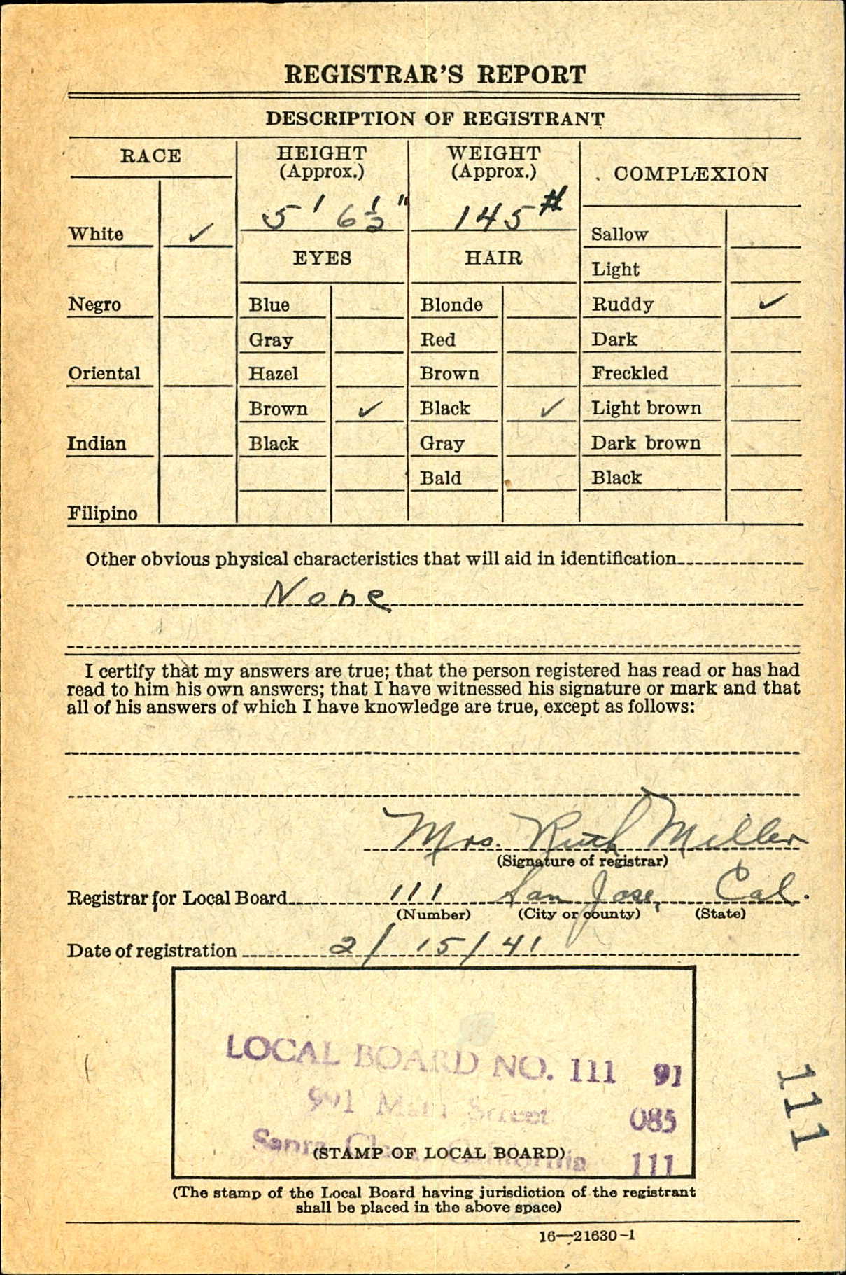 1941 World War II Registration Page 1