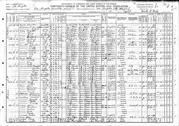 Lopez Family 1910 Federal Census California, Lines 42-48