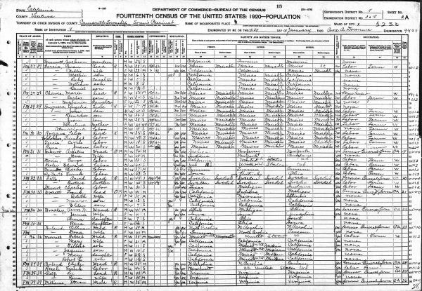 Garcia Family 1920 Federal Census California, Lines 2-7