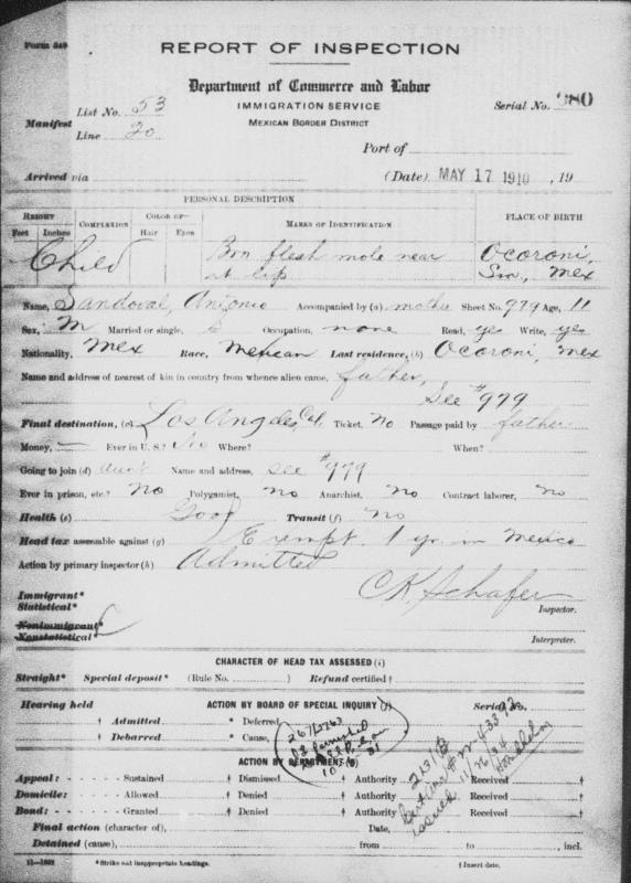1910 Immigration Inspection Report