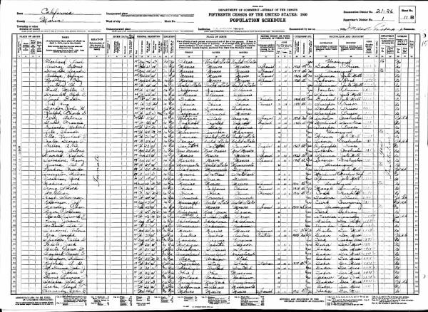 Garcia Family 1930 Federal Census California, Lines 60-68