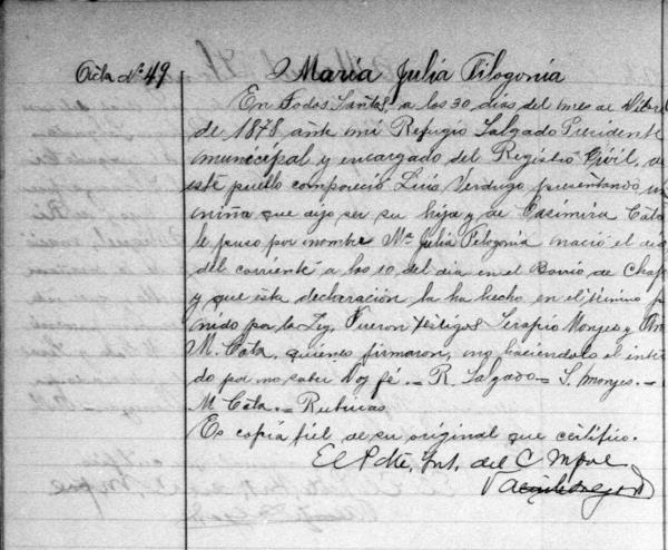 Maria Julia Filogonia Verdugo was born on December 30, 1878 in Todos Santos, La Paz, Baja California Sur, Mexico. She and