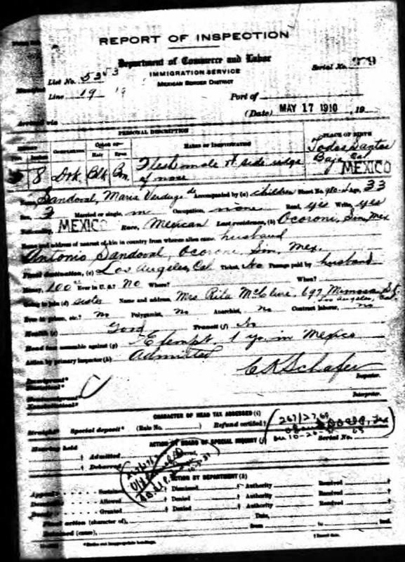 Antonio Sandoval were married on December 2, 1899 in Ocoroni, Sinaloa, Mexico. She died.