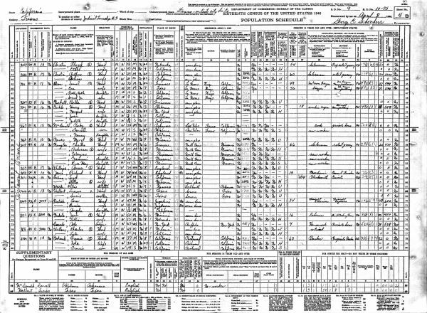 Sandoval Family 1940 Federal Census California, Lines 43-48