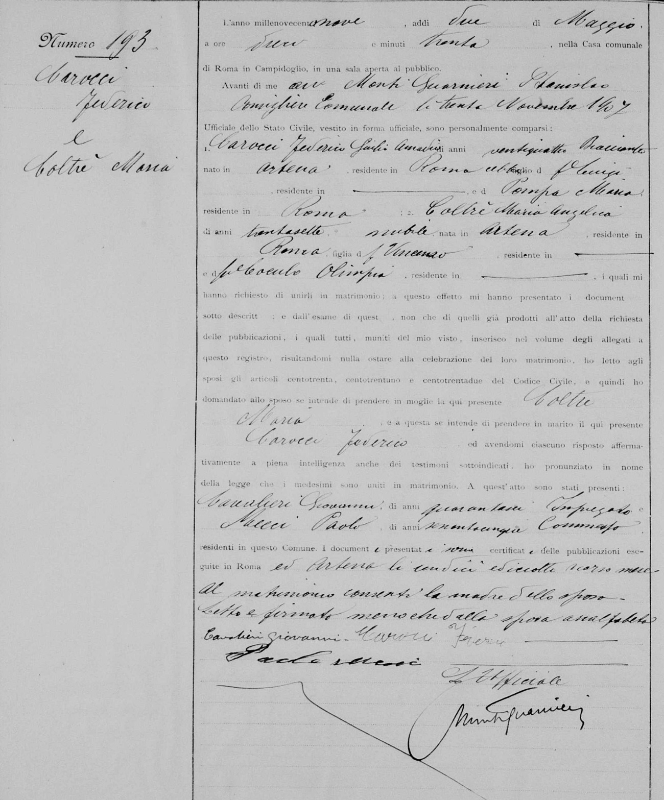 Federico Guilio Amadio Carocci were married on May 2, 1909 in Roma, Roma, Lazio, Italy. She died.