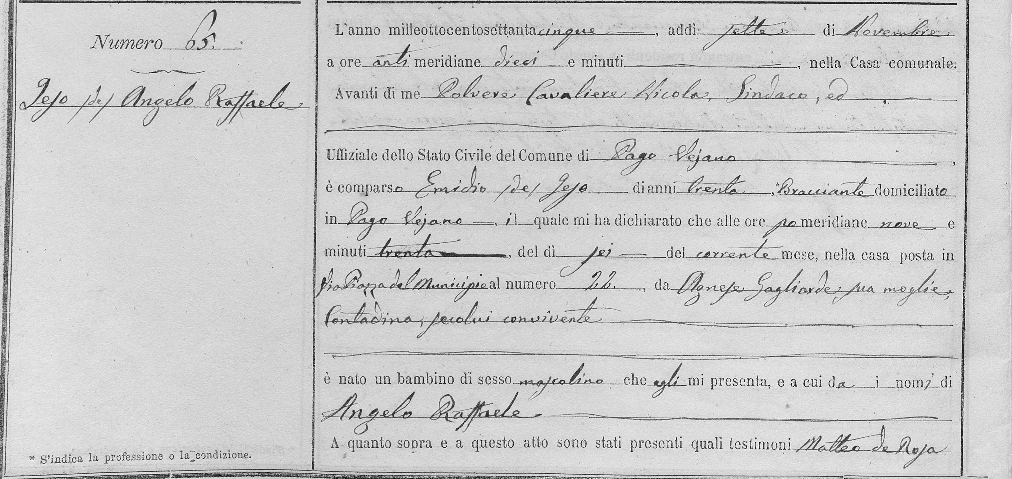 Angelantonio De Ieso was born in 1863 in Pago Veiano, Benevento, Campania, Italy. He and